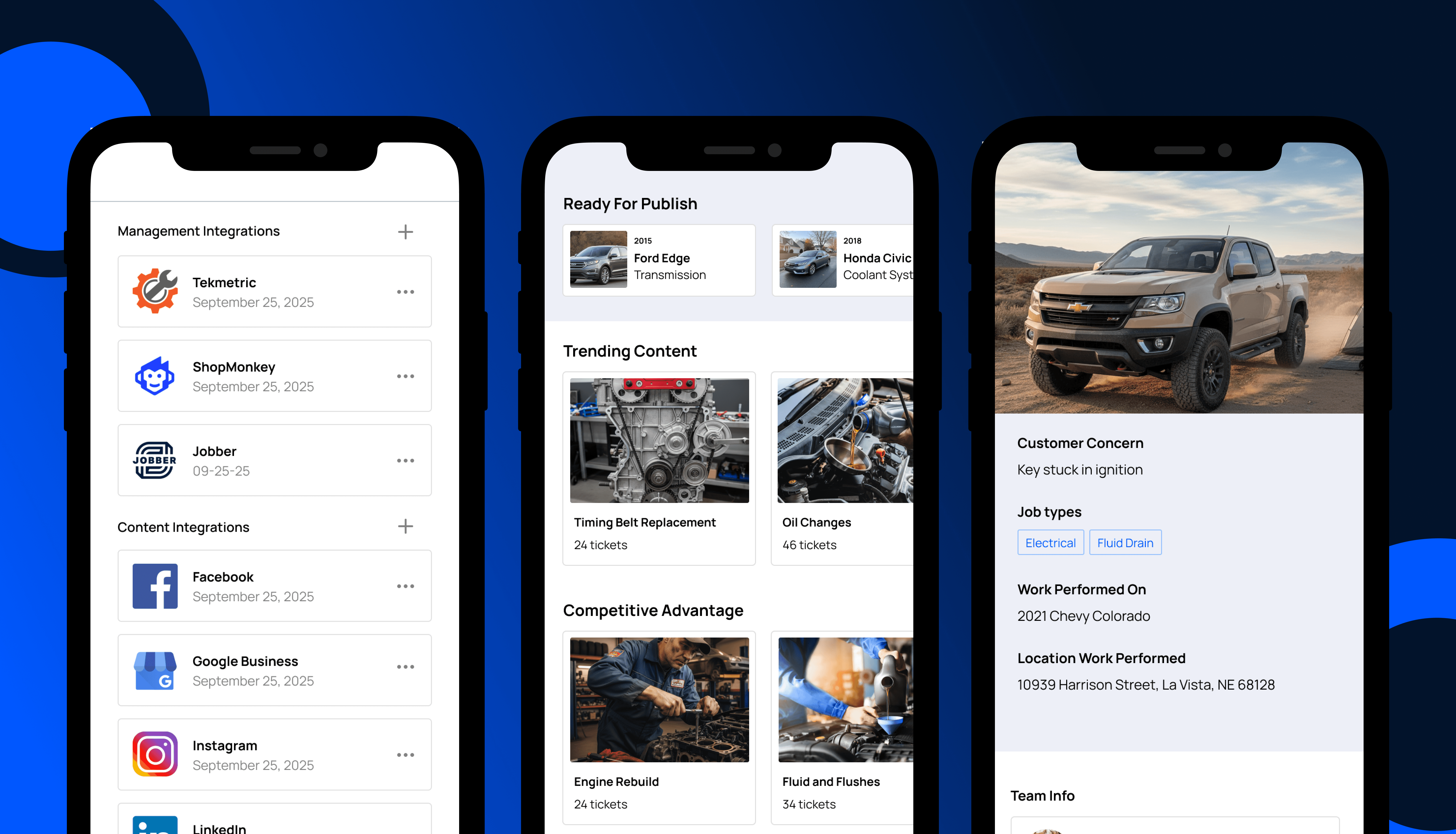 Each completed job becomes content on your website, Google Business Profile, and social platforms - without extra work.